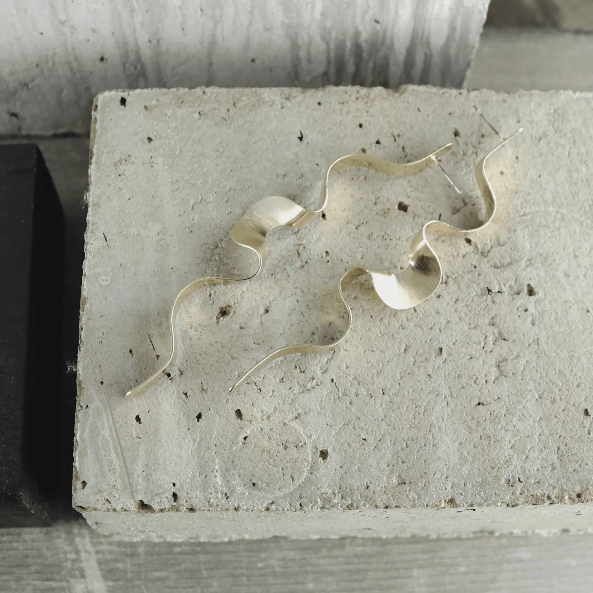 Introducing Tara 's Wave Statement Earring, featuring a beautifully scratched gold plating. Perfect for any occasion, this earring exudes elegance with its unique finish. Elevate your look with this sophisticated and exclusive piece.